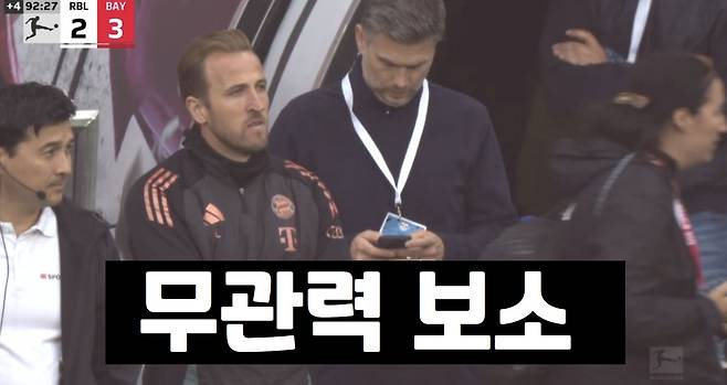 우승을 눈앞에 둔 케인은 이때 그라운드로 내려와 우승의 순간을 즐기기 위해 준비했다. 하지만 후반 추가 시간 4분, 경기 종료 직전 뮌헨은 동점을 허용했고, 결국 뮌헨의 우승은 다음으로 미뤄졌다.