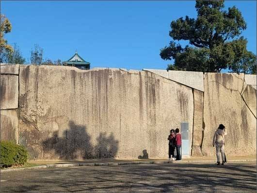 | ▲ 돌 담장 사람 키의 세배나 되는 돌 담장을 지나고, 두개의 해자(못)를 건너야 멀리 보이는 천수각에 다다른다. |