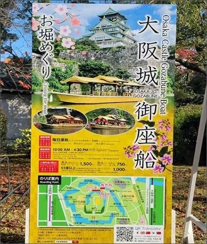 | ▲ 입간판 오사카성에는 해자(못)가 두 개나 있는데 이곳을 작은 배를 타고 유람할 수 있다고 설명한 입간판 |