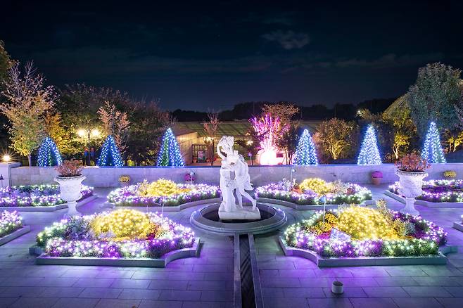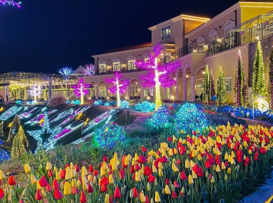 • 해가 진 뒤에는 정원 전체가 은은한 조명으로 빛나, 낮과는 또 다른 로맨틱한 분위기가 펼쳐집니다. 산책로를 따라 거닐다 보면 환상적인 조명 연출을 곳곳에서 만나볼 수 있어요.