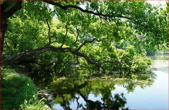 잎이 짙어진 왕버들 아래, 바람은 더욱 고요하게