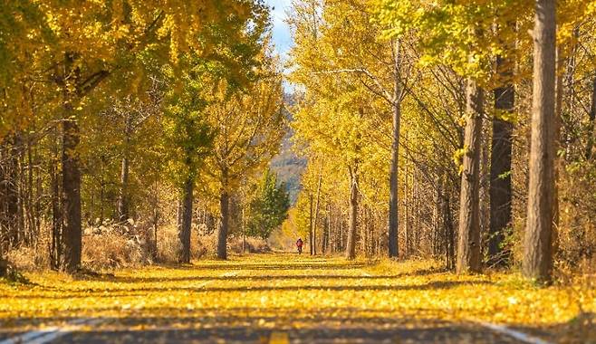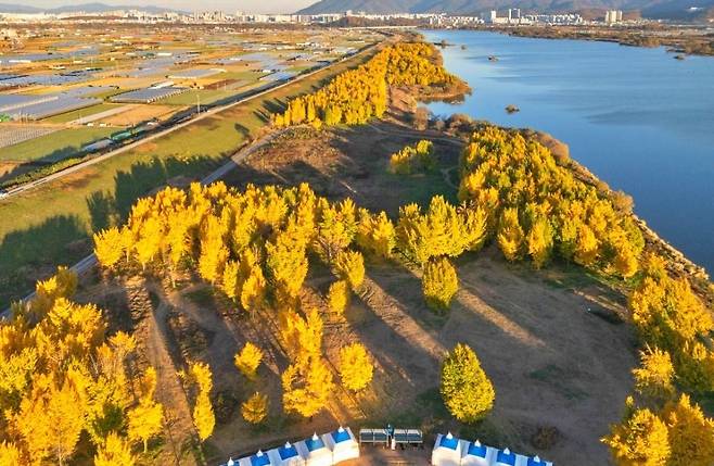 경상북도 고령군 다산면 좌학리에 자리한 은행나무 숲은 가을이면 황금빛으로 물드는 명소로 유명하다. 1990년에 조성된 이 숲은 낙동강을 따라 길게 이어져 있으며, 10월 중순부터 노란빛으로 물들기 시작해 11월 중순이면 절정을 맞이한다. 강가를 따라 늘어선 수백 그루의 은행나무가 만들어내는 풍경은 그야말로 가을의 한가운데에 서 있는 듯한 느낌을 준다.