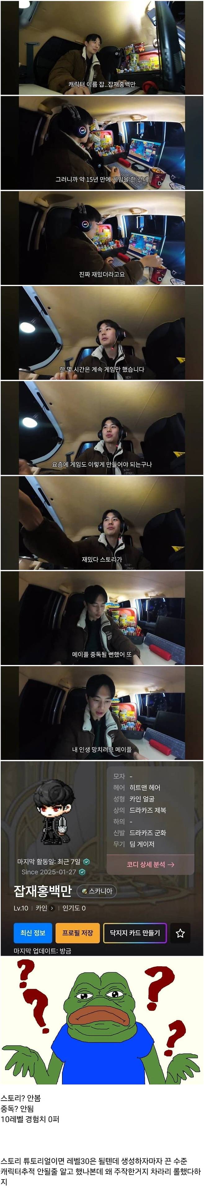 차 속에서 메이플스토리를 플레이하는 장면을 보여주면서