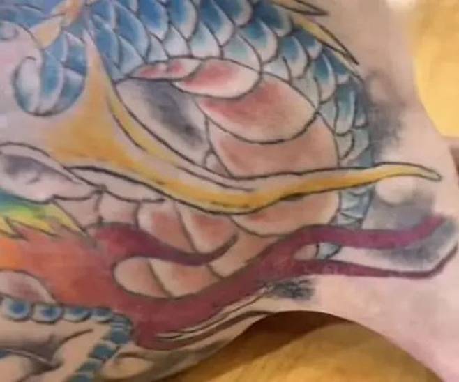 문신은 단순한 그림이 아니라 등에 커다란 용 얼굴이 자리 잡고 있었고 몸통이 네 다리 쪽까지 이어져 있어 보는 이들을 깜짝 놀라게 만들었는데요.