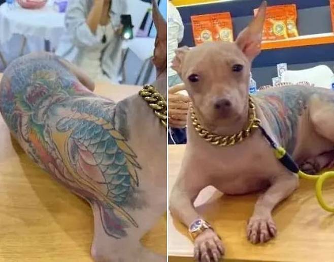 몸에 용 문신을 새긴 강아지 모습이 담긴 사진은 SNS상에 빠르게 확산됐고 이를 접한 사람들은 강한 비판을 쏟아냈습니다.
