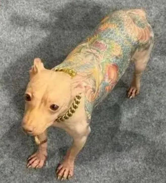 몸에 용 문신을 새긴 강아지 모습이 담긴 사진은 SNS상에 빠르게 확산됐고 이를 접한 사람들은 강한 비판을 쏟아냈습니다.