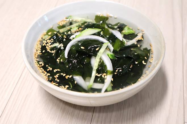 마지막으로 통깨만 솔솔 뿌리면 미역오이냉국 끝!!! 냉장고에서 시원하게 보관했다 먹어도 좋고요. 얼음 동동 띄우면 더 시원하고 개운해요.