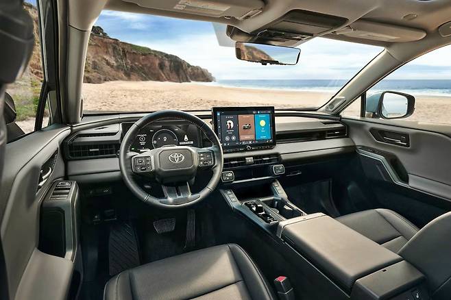 2026년형 RAV4는 과거와 같은 부드럽고 이지적인 이미지에서 벗어나, 보다 각지고 정통 SUV에 가까운 외형으로 새롭게 정의됐다. 전면부는 수평으로 분할된 헤드라이트와 직선적인 대형 그릴을 적용해 랜드크루저의 DNA를 고스란히 물려받았다. 크라운 시그니아와 같은 날렵한 쿠페형 스타일 대신, 정통 SUV만의 볼륨감과 터프함이 강조된 것이다.