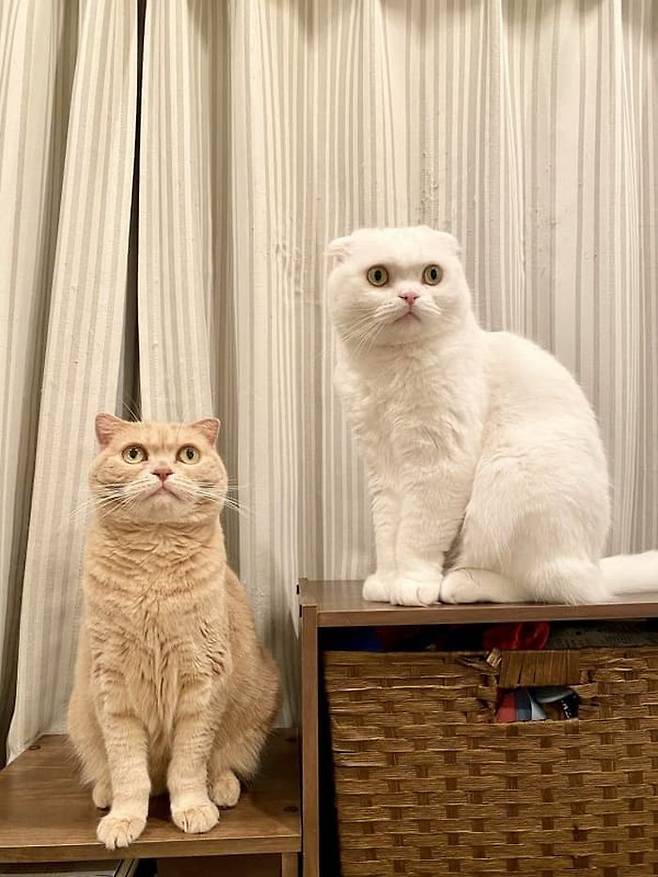 집에서 스코티시 폴드 고양이 두 마리를 키우는 집사가 있는데요. 스코티시 폴드 고양이들의 이름은 각각 모로미와 무쿠.