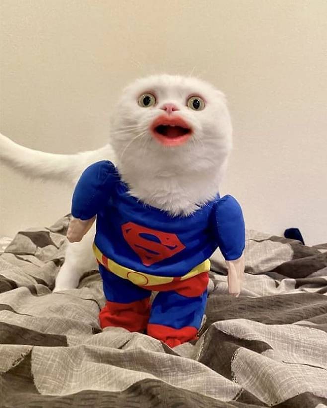 귀여워야 할 고양이가 갑자기 우스꽝스럽게 변신한 모습은 보는 이들마다 배꼽을 잡게 만들기 충분했죠.