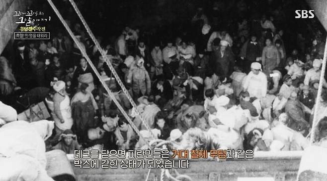 "그 안에는 빛도, 환기도, 화장실도, 물도 없었습니다. 데크를 닫으면 피란민들은 거대 철제 무덤과 같은 박스에 갇힌 상태가 되었습니다. 12월 말이었으니까 이가 시리게 추웠습니다."