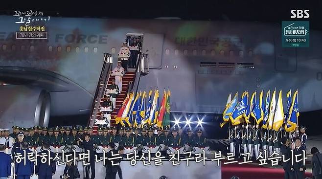 "70년의 시간이 흘렀지만 한시도 잊지 않고 있었습니다. 늦었지만 조국을 위해 헌신하신 선배님들을 모시게 되어 영광입니다. 지금부터 대한민국 공군이 안전히 호위하겠습니다."