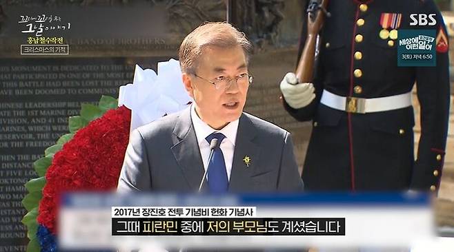 -문재인 전 대통령, 2017년 장진호 전투 기념비 헌화 기념사 중