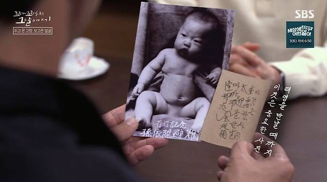 아버지가 신신당부하며 주셨던 것이 있어. 아버지의 글씨가 쓰인, 양영 씨의 백일 사진과 메모야. "이걸 꼭 간직하고 있으라. 북에 두고 온 네 형이랑 누나를 만나면 보여줘라. 이게 네가 동생이라는 증거다"라고 하셨대. 양영 씨는 그 때부터 메모와 사진을 늘 품에 품고 다녔어.