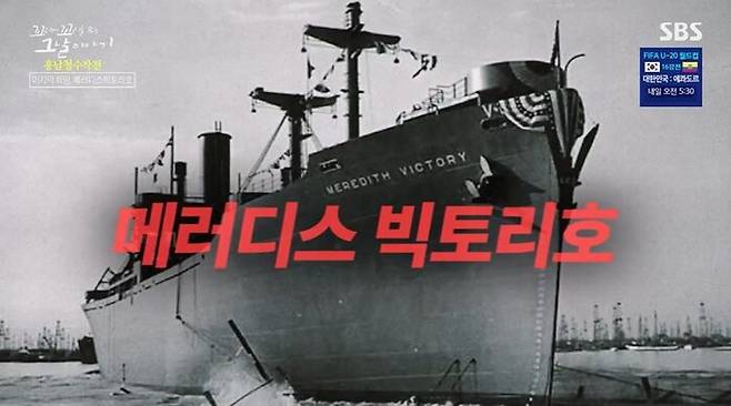 그 시각, 미군의 급한 연락을 받고 흥남부두로 오고 있는 배가 한 척 있어. 배의 이름은, 메러디스 빅토리호. 이 배는 상선으로, 주로 군수물자를 실어 날라. 부산에서 제트기 연료 1만톤을 내리고 있었는데, 급히 연락을 받고 부산에서 흥남부두로 온 거야. 이 배에는 내리지 못한 연료 300톤이 실려있는 채였어.