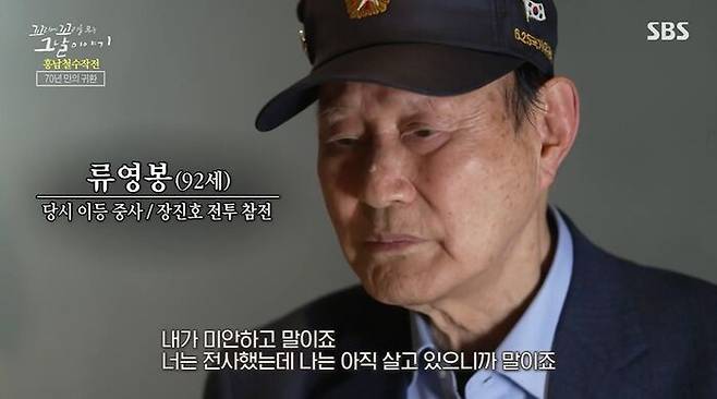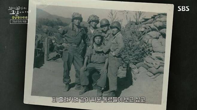 "내가 미안하고 말이죠. 너는 전사했는데 나는 아직 살고 있으니까 말이죠. 피 흘려가며 같이 싸운 동료들이 보고 싶고. 이렇게 발달된 대한민국에 아직 혼자 살고 있으니까, 미안한 감도 있고. 기쁜 마음 반, 미안한 마음 반반으로 말이죠. 평생 내가 죽어서도 못 잊어요. 그래서 내가 할 수 있을 때까지는 말이죠. 내가 건강할 때까지 계속 봉사하고 싶은 마음입니다."