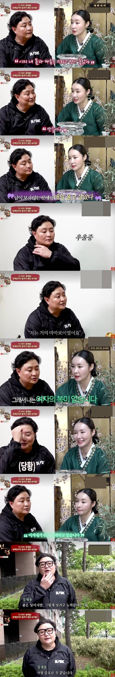 매화아씨는 "돈이 다 어디 갔나. 내가 연예인이라 말을 못 해 그렇지 속과 정신이 병이 들어 울고 싶다"라며 정재용의 마음을 대변해 말했다.