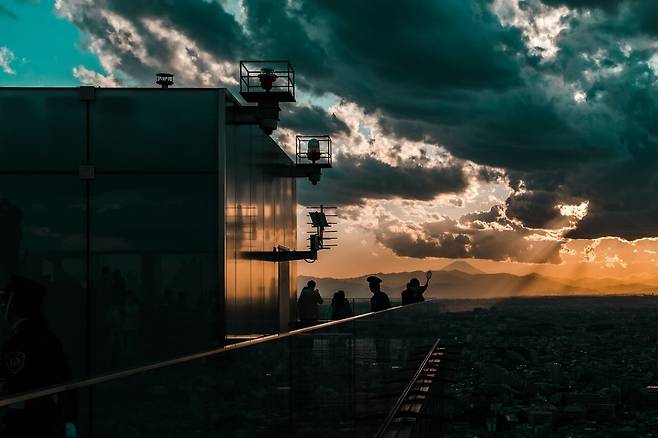 도쿄의 하늘과 도시가 한 프레임에 담기는 시부야스카이. 해가 지고, 유리 난간에 반사된 주홍빛 노을이 서서히 푸른 어둠에 스며들 때 어울리는 노래가 있다. 바로 타츠로 야마시타의 창맹(蒼氓)이다.