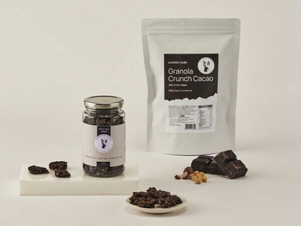 수제 그래놀라 브랜드 모던구루는 설탕, 밀가루, 식품첨가물을 사용하지 않고, 100% 천연 재료를 고집한 수제 그래놀라를 공급하는 제조사다. 이들은 당류 함량이 1회 분량 30g 기준 3g에 불과해, 달콤함을 즐기면서도 건강에 대한 부담감을 확 줄인 ‘크런치 카카오 그래놀라’를 출시했다. 이탈리아산 고급 초콜릿을 사용해, 카카오 함유량을 70% 이상으로 맞췄다. 200g 기준 판매가는 11,000원이다.
