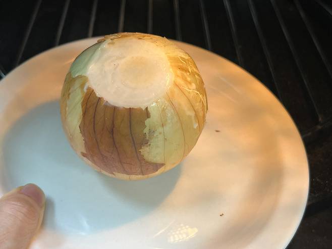 양파를 접시 위에 놓고 10초~15초 전자레인지에 돌려줍니다. 양파를 전자레인지에 돌리면 매운맛이 중화될 뿐만 아니라 단 맛을 끌어올려 양파맛이 더 좋아진다고 합니다.