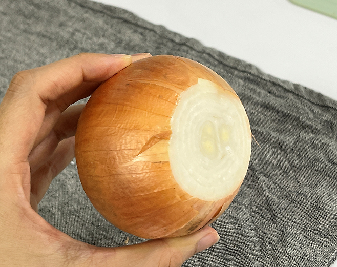 따라서 양파 껍질을 깔 때는 뿌리 부분을 놔두고 껍질을 까는 것이 좋다고 합니다.