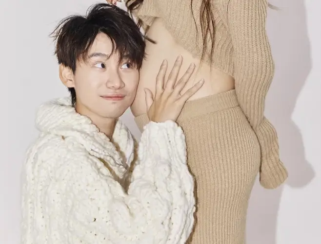 사진에서 도인비는 아내의 배에 얼굴을 갖다 대고 행복한 표정을 짓는가 하면 불룩한 배를 드러낸 아내 옆에서 함박웃음을 짓기도 한다.