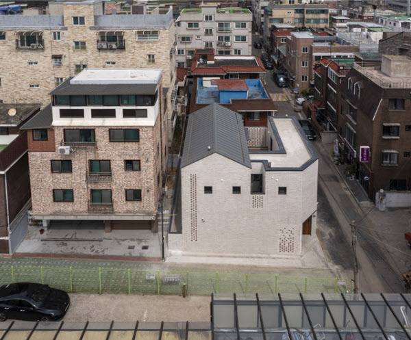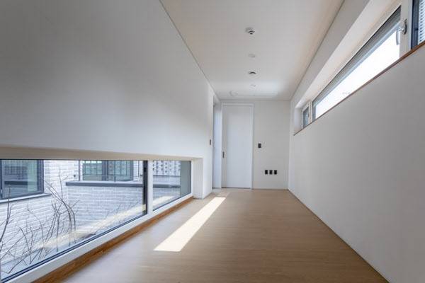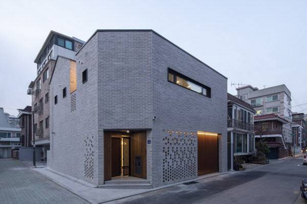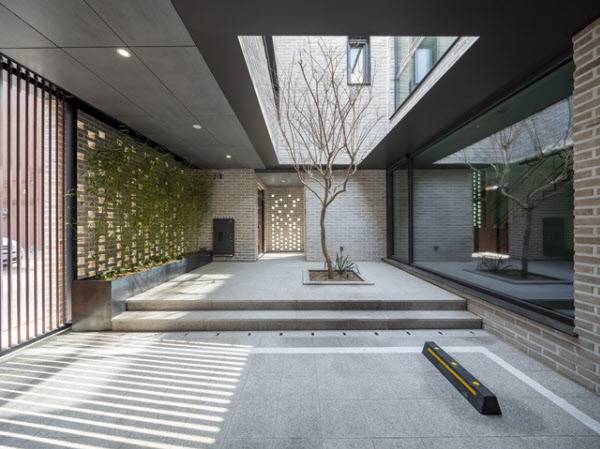 “사실 저희 집이 2개의 도로에 접하면서도 필지의 규모가 작은 편이었기에, 닫힌 배치의 마당을 완성하는 것이 쉬운 일만은 아니었어요. 그래서 1층과 2층을 구분하고서, 1층은 一자로 배치해 온전한 비례의 마당을 확보하고, 2층의 경우에는 닫힌 ㄷ자 배치를 통해 외부로는 닫혔지만 내부로는 열린 마당으로 구성했죠. 특히 길과 면하는 1층 경계담(벽)은 영롱 쌓기와 사선의 루버를 통해 채광을 확보하면서도 남의 시선에서 자유로운 환경을 만들었어요.