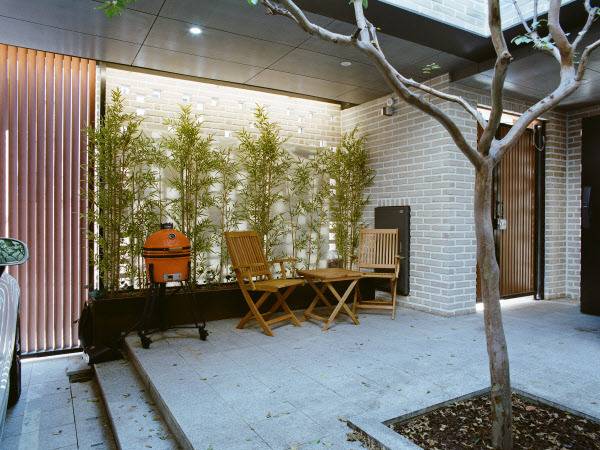 “맞아요. 일단 집 안으로 들어오면, 우산을 꽂고 자유롭게 내외부를 오갈 수 있는 점이 편리해요. 대문과 현관문 사이에 별도의 보관함을 설치해 분리수거 등도 마음껏 할 수 있고, 비와 바람을 느끼면서 중정을 누릴 수도 있고요. 아무래도 주차장이 함께 있다 보니, 자동차가 비를 맞지 않는다는 점도 좋죠. 특히 중정에서 바로 주방으로 갈 수 있는 작은 문을 설치한 덕분에, 자동차에서 짐을 내려 바로 주방에 가져다 놓을 수 있는 점도 편리해요.”