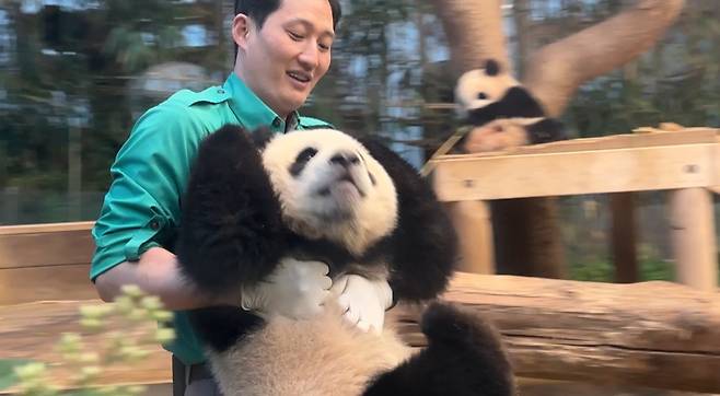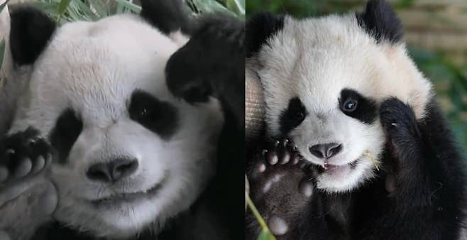 '송바오' 송영관 주키퍼는 같은 질문에 "관점의 차이가 있는 것 같다. 상황이나 각도에 따라 모든 존재들이 다 보이는 것 같다"고 설명했습니다. 송 주키퍼의 말대로 아이바오와 러바오의 유전자를 골고루 물려받은 후이바오에게선 엄마 아이바오의 모습도, 아빠 러바오의 모습도, 그리고 맏언니인 푸바오의 모습도 조금씩 엿볼 수 있네요.