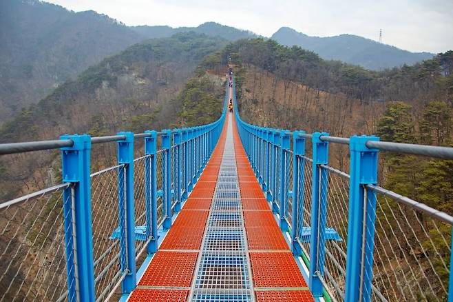 두 번째는 소금산출렁다리다. 국내 최장 규모의 출렁다리로, 아찔한 절벽 위를 걷는 짜릿한 체험을 제공한다. 다리를 건너면 원주의 산세와 섬강이 한눈에 들어오며, 야간 조명으로 꾸며진 모습도 특별하다.