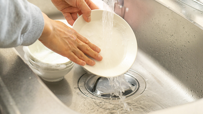 세제물을 그릇에 담아 수세미를 반복해서 담그는 방식도 마찬가지다.