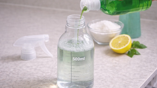 빈 분무기에 미지근한 물 500밀리리터를 붓고 주방 세제 1~1.5밀리리터만 섞으면 기본 준비는 끝이다. 따뜻한 물은 세제를 빠르게 용해시키고, 세정 성분이 고르게 퍼지도록 돕는 역할을 한다.