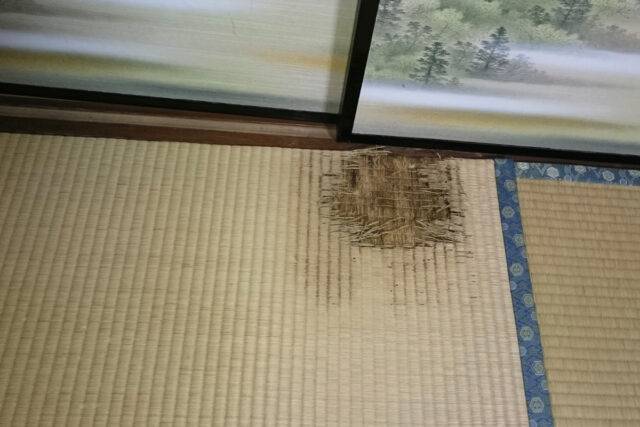 물이나 액체가 다다미에 흘렀을 경우, 두꺼운 다다미 내부까지 스며들어 곰팡이와 악취를 유발할 수 있습니다.