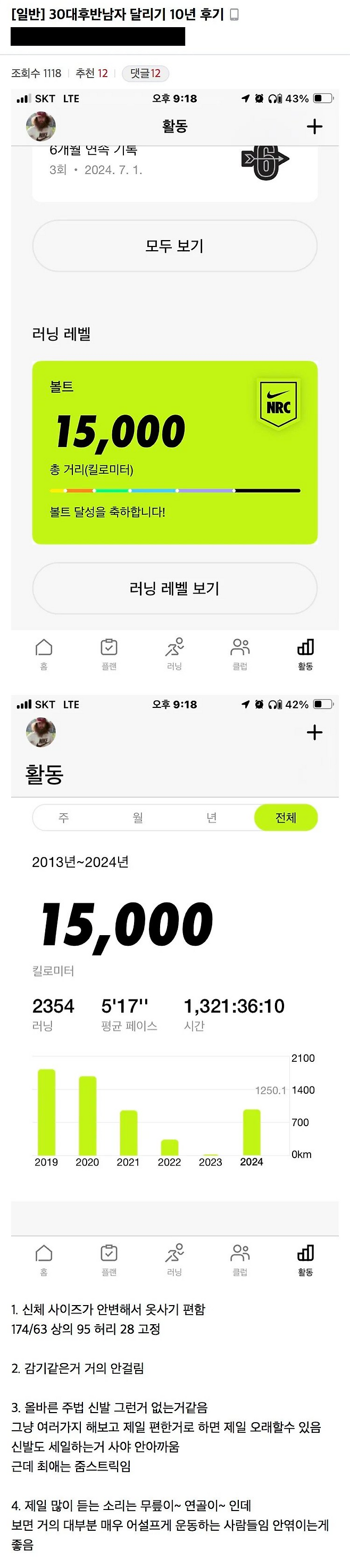10년 동안 러닝한 30대 남자의 후기