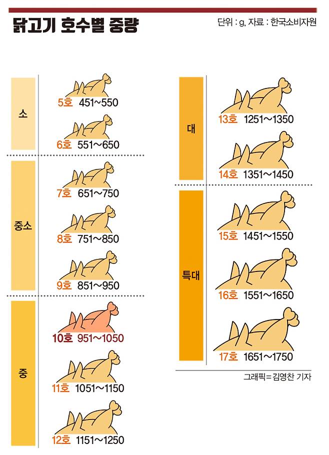 업계에 따르면 10호는 '골든 사이즈'로 불리는 중간 크기의 닭고기로 보통 1㎏입니다.