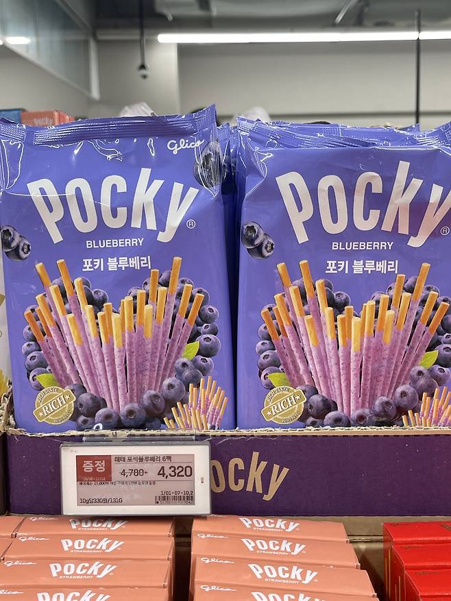 포키 블루베리 6팩은 블루베리 맛의 초콜릿이 코팅된 포키 스틱으로 상큼한 과일 향과 달콤한 초콜릿의 조화가 특징이에요.