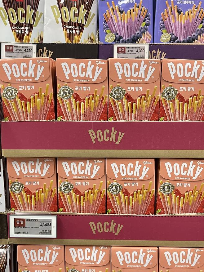포키 딸기는 달콤한 딸기크림이 코팅된 얇은 비스킷 스틱으로 상큼한 향과 바삭한 식감이 특징이에요.