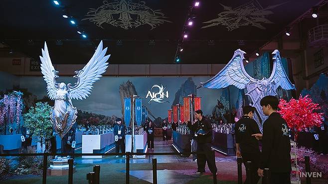 이 많은 인파가 가장 집중된 곳은 단연 메인 스폰서인 엔씨소프트의 부스였습니다. 11월 19일 출시를 앞둔 신작 MMORPG, '아이온2'가 올해 지스타의 주인공으로 떠올랐죠. 지스타 단일 부스 최대 규모인 100석의 시연 환경을 마련했음에도, 평균 4시간 이상의 대기 시간이 발생했습니다. 관람객이 몰려 시연이 조기 마감되는 등 그 인기를 공공연히 증명했죠.