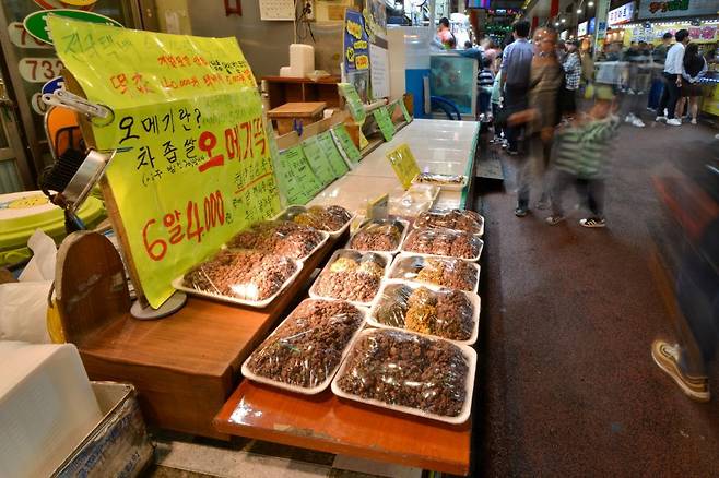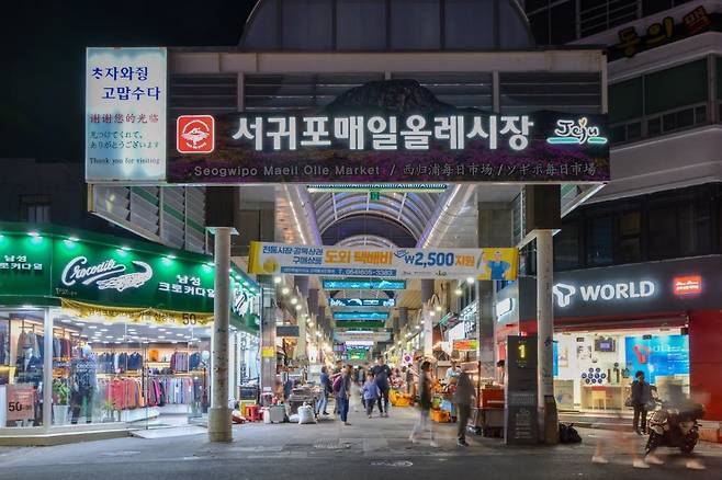 서귀포 매일 올레 시장. 서귀포 지역에 처음 시장이 형성된 것은 지금으로부터 100년이 훌쩍 넘은 1906년이었다. 당시 제주 군수였던 윤원구의 주도로 각 지역 중심마다 5일장이 개설되면서, 서귀포에도 장터가 들어선 것이다.