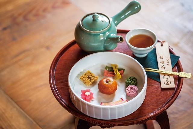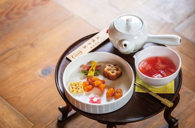 차는 감국다, 삼귤다, 감길다, 오미자다 등 네 가지 가운데 하나를 선택해 맛볼 수 있었습니다. 감길다(甘吉茶)는 ‘경복궁 생과방’ 행사에 처음 추가된 차로 인후통으로 인한 증상을 완화하는 탕약입니다. ‘승정원일기’에서도 찾아볼 수 있습니다.