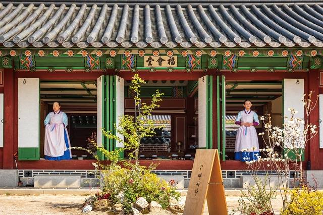 예약자 확인을 마치자 차비(差備) 복식을 한 진행 요원이 안내에 나섰습니다. 차비는 조선시대 궁중의 주방에서 실무를 담당한 하위 계급의 나인입니다. 옥빛 저고리에 푸른 치마를 입은 나인들이 왕을 모시듯 예를 갖춰 체험객들을 자리로 안내했습니다.