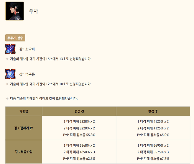 밸런스 패치, 워리어/아처 너프! 우사/매구 상향 검은사막의 캐릭터 밸런스 패치는 꾸준히 이뤄지고 있다. 그러나 아직 갈피를 못잡은 캐릭터가 많아 유저들의 원성이 높아지는 중이다. 각성 워리어는 이번에도 기술 피해량이 전체적으로 하향되어 너프를 받아버렸다. 각성 위자드 역시 기술 피해량이 줄어든 상태다.