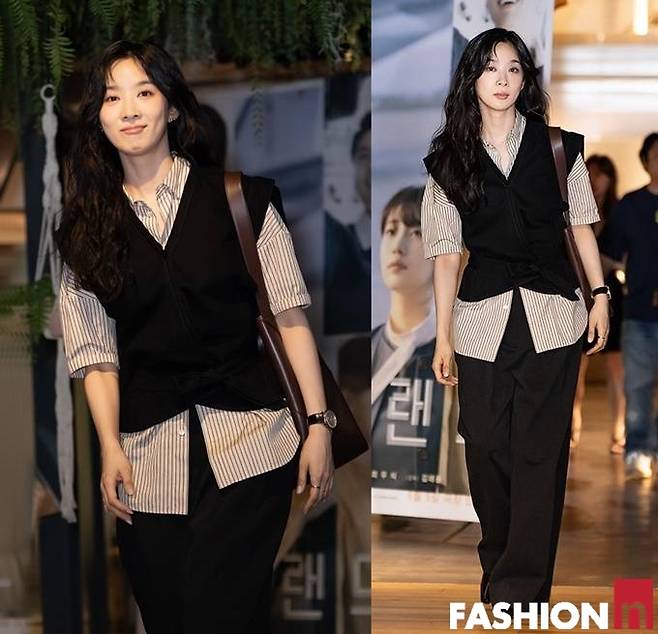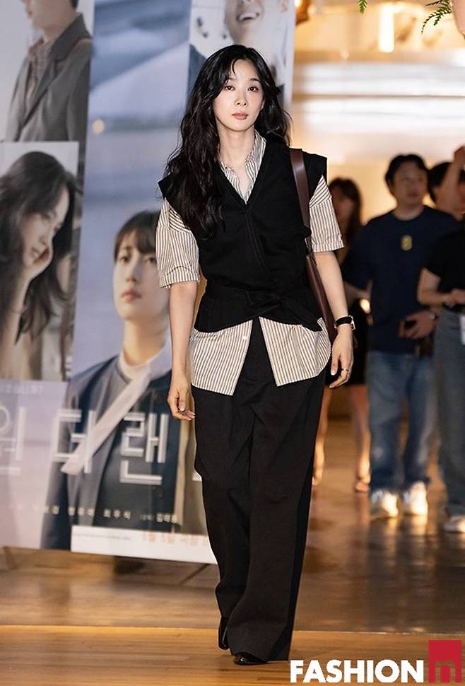 이날 VIP 시사회에는 탕웨이, 이청아, 전소니, 남지현, 변우석 등이 참석했으며 이청아는 스트라이프 셔츠와 블랙 조끼를 레이어드한 스타일리시한 시사회룩으로 눈길을 사로잡았다.