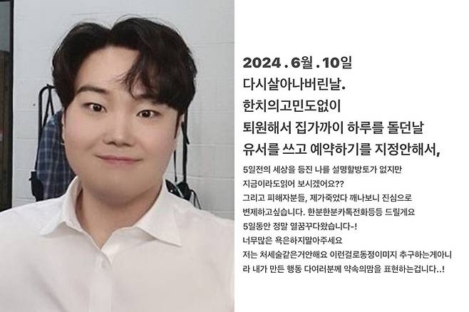 그는 같은 해 6월 자살 시도로 병원에 입원했다가 퇴원해 유서를 업로드하기도 했으나, 대중의 반응은 싸늘한 것으로 보입니다.👀