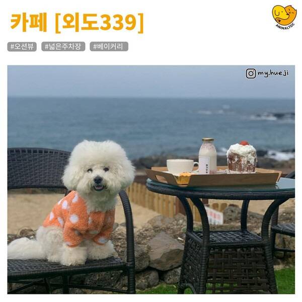애월에서 차로 조금 이동하면 도착하는 외도동에는 반려견과 함께 들를 수 있는 전망 좋은 카페 ‘외도339’이 있습니다. 이곳은 잔디밭이 넓게 펼쳐져 있어 강아지가 뛰어놀기 좋은 환경을 갖추고 있는데요.
