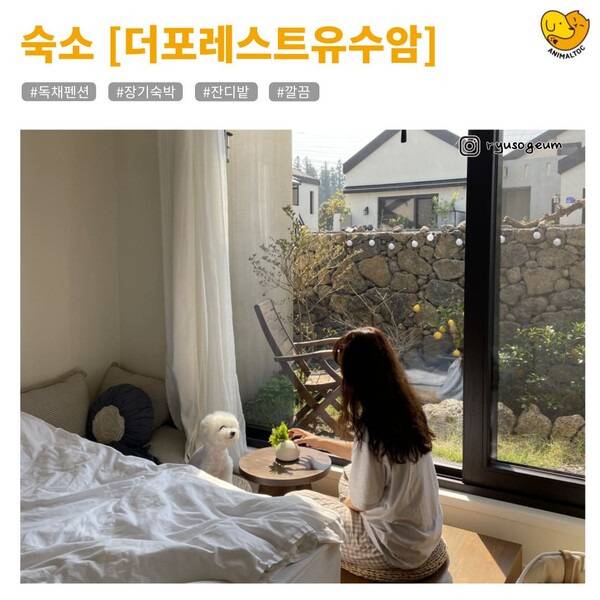 제주도 애월 인근, 조용한 마을 유수암에 자리한 '더포레스트유수암'은 반려견과 함께 머물기에 최적화된 숙소입니다. 주변이 한적하고 자연이 어우러져 있어, 산책이나 휴식 모두 만족스러운 시간을 보낼 수 있는데요.