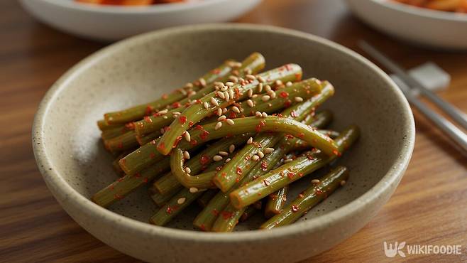 데친 줄기는 무침이나 비빔용으로도 활용된다. 끓는 물에 소금을 살짝 넣고 30초 정도 데친 뒤 찬물에 헹구면 색이 선명해지고 식감도 부드러워진다. 고추장, 마늘, 참기름, 깨소금을 넣고 조물조물 무치면 밥반찬으로 손색없다.