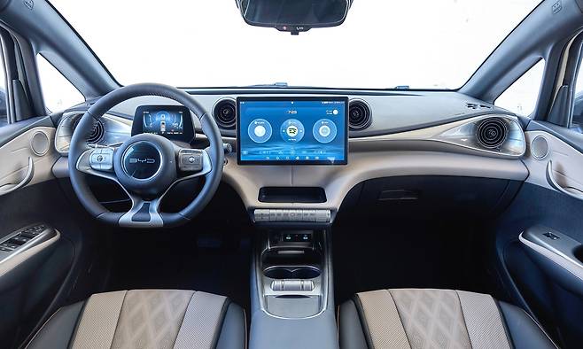 돌핀의 차체 크기는 전장 4,290mm, 전폭 1,770mm, 전고 1,570mm, 휠베이스 2,700mm로 소형 해치백 중에서는 넉넉한 편에 속한다. 캐스퍼 일렉트릭이 전장 3,825mm, 전폭 1,610mm, 전고 1,575mm, 휠베이스 2,580mm인 점과 비교하면 돌핀이 전장 기준으로 465mm, 전폭 기준으로 160mm 더 크다. 실내 공간 효율성을 결정짓는 휠베이스 역시 120mm 더 길어 뒷좌석 레그룸과 적재 공간에서 확실한 우위를 점한다. 5인승 구조로 설계된 돌핀은 도심에서 출퇴근용으로 사용하면서도 가족 단위 나들이에 활용하기에 부족함이 없다. 크기 대비 효율적인 공간 구성은 돌핀이 단순한 저가형 전기차가 아니라 실용성을 갖춘 패밀리카로도 손색없음을 보여준다.