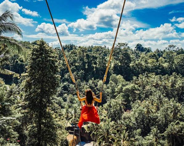 발리 스윙 또한 초록빛의 우붓을 한눈에 담을 수 있어 유명한데요. 뜨그눙안 폭포를 배경으로 누워서 타는 그네, 앞으로 타는 그네, 뒤로 타는 그네 등 다양한 그네를 탈 수 있습니다. 밧줄로 안전장치가 되어 있고, 그네를 밀어주는 직원이 사진까지 따로 찍어줘서 우붓에서의 추억을 예쁘게 남길 수 있어요.