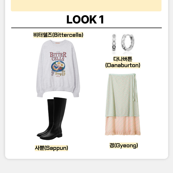 첫 번째 코디는 '경(Gyeong)'의 레이어드 스커트야.